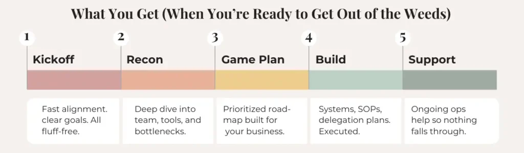 For founders ready to offload day-to-day operations and scale with structure, we become an extension of your leadership team - handling strategic planning, process optimization, team development, and execution.